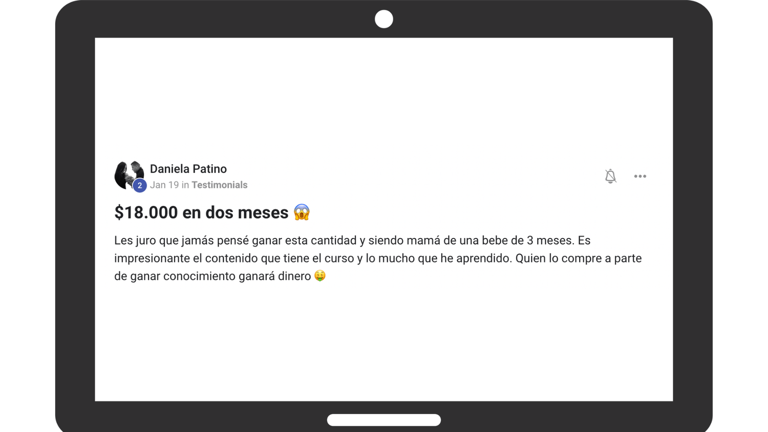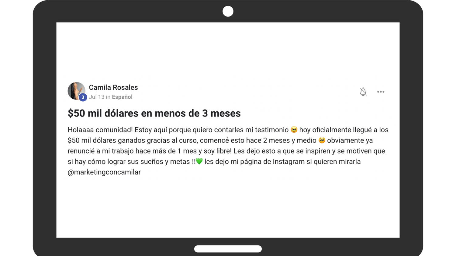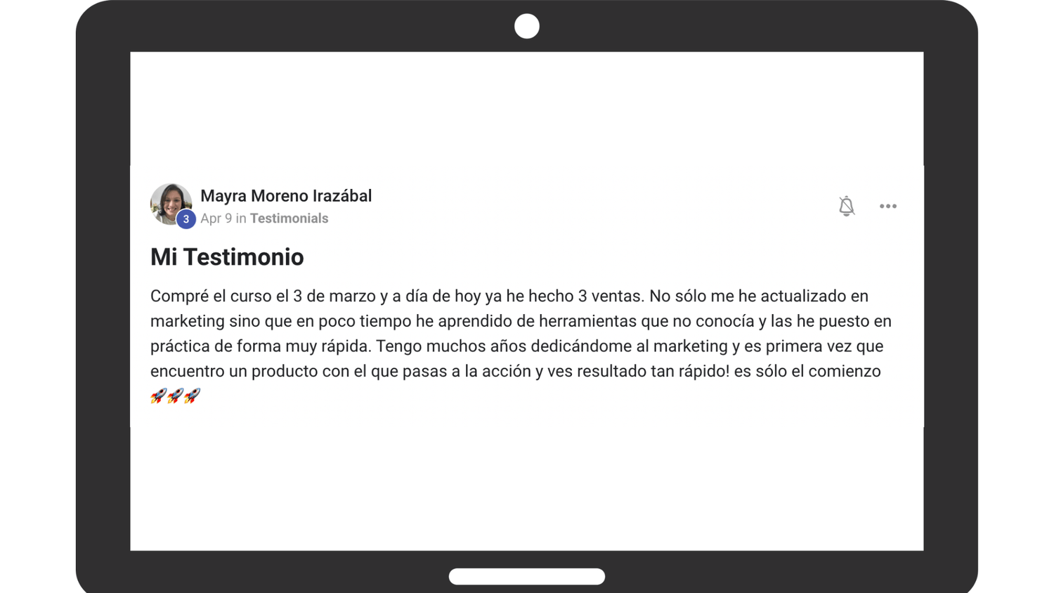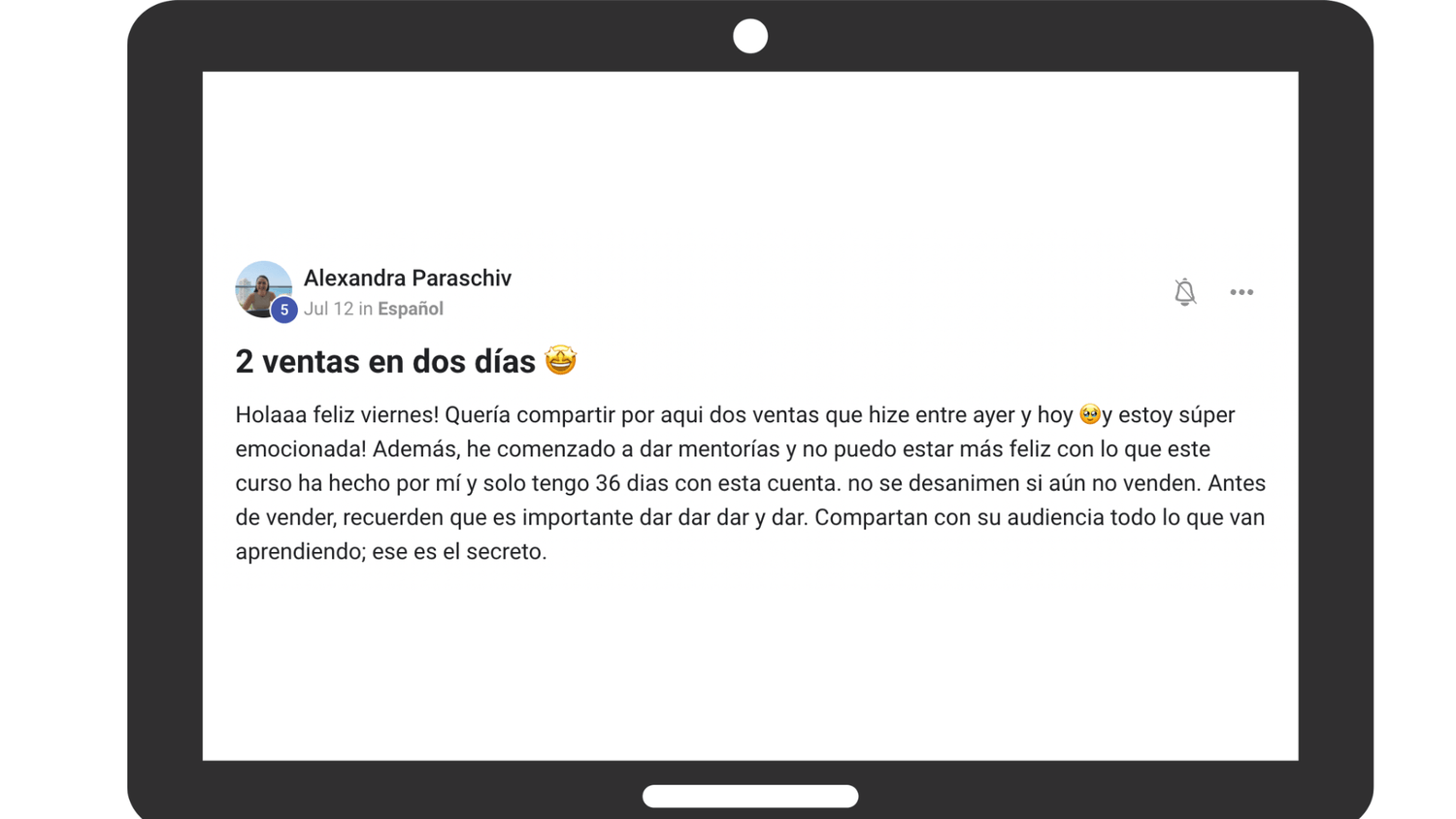 Al adquirir el curso, obtienes todas las herramientas y recusos que están diseñadas de manera sencilla para quienes están comenzando. Tendrás acceso de por vida a las actualizaciones del curso y formarás parte de una maravillosa comunidad donde también comparten sus resultados y experiencias.